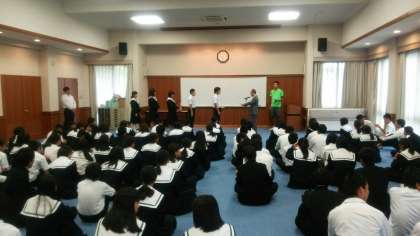 本日17日(月)、全校集会にて後期生徒会役員の認証式を行いました。