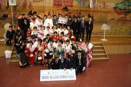 1/13(月)西成区民センターであった成人式に、本校の『生徒会・子ども防災プロジェクトチーム』のメンバーが参加しました。