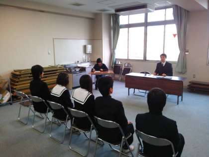 進路に向けて、面接練習が行われました。校長先生と教頭先生が面接官ということもありみんないつになく緊張していて、真剣な表情で取り組んでいました。本番に向けて、よい練習になりました。