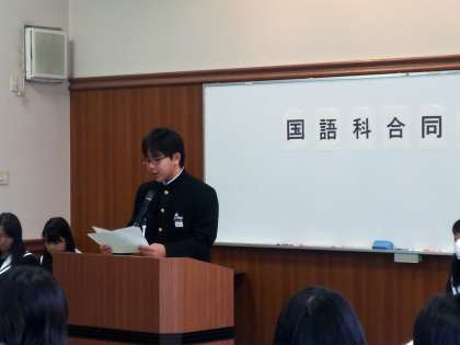 今年も1年の代表4人、2年の代表6人、3年の代表6人が、この国語科合同発表会の舞台に立ち、全校生徒の前で堂々と発表をしました。