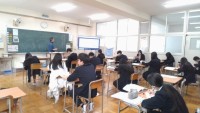 酸素と二酸化炭素を発生させる実験をおこないました。水上置換法、そして助燃性の確認。班で協力する姿勢に成長を感じました。