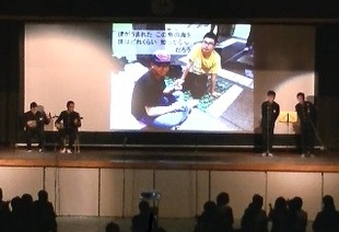アジアサークル(略称を「アジサ」といいます)は、アジア方面の文化などを研究する部で、毎週月・水・金の3回活動しています。最近は沖縄の音楽の練習に取り組んでいます。写真は文化祭で「島人ぬ宝」の歌を、三線に合わせて歌いました。