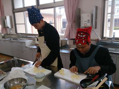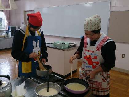 3,4時間目、2年生はクレープとりんごジャム作りに挑戦しました。