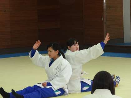 女子は柔道の寝技。教室で授業を受けている時と違った、気迫あふれる様子でした。