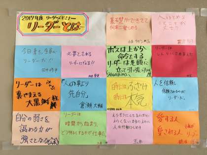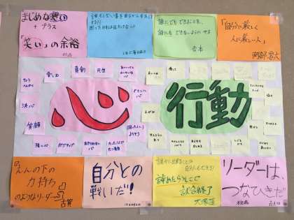 第一回は、南玄関の生徒くつ箱の上に掲示されている、リーダーズセミナーで書いたリーダーの言葉です。