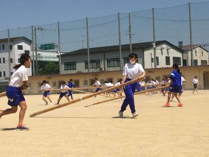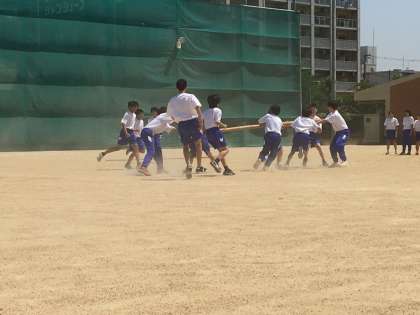 体育大会の練習を中心に、100メートル走や棒引きなどに取り組みました。