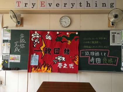 明日は競技以外に学級旗の投票があります。