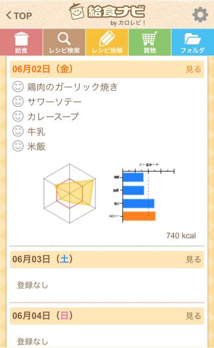 本日は給食ナビの栄養素グラフを添付いたしました。