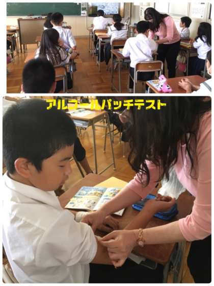 最後に、アルコールを含ませた綿で、簡単な皮膚のパッチテストも行いました。