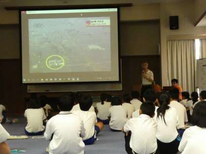 講師は石巻西高校の校長をされていた2年前に「いのちの講話」で来てくださった齋藤幸男(現 東北大学特任教授)先生が「災間に生きる君たちへ〜震災の教訓と教育の力」がテーマの講演に加えて、避難所運営のワークショップをしていただきました。