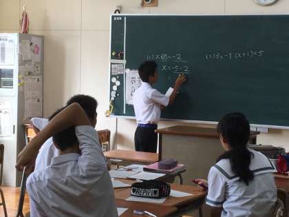 写真は、学級代表が問題の解説をしている様子です。