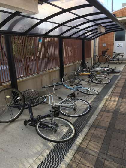 大型の台風18号TALIM(タリム)の影響で、朝から自転車や木が倒れていました。