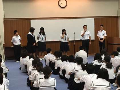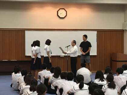 前期最後の生徒集会ということで、生徒会役員や各委員会の委員長からの最後の話もありました。
