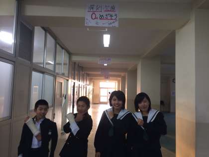 『遅刻・欠席0人を目指そう』『メリハリをつけよう』『休み時間の過ごし方を改めよう』などのポスターを作成し、2年生のフロアにたくさん掲示しました。