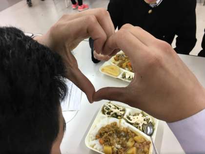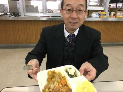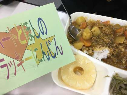 本日の給食は、ポークカレーライス、ごぼうサラダ、パインアップルでした。