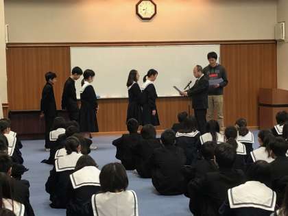 今日は、校長先生のお話のあと、英検の合格者の表彰も行われました。