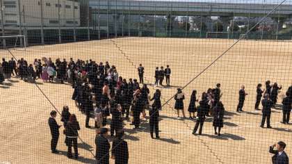 旅立ちのとき、最後はグラウンドに花道をつくり、在校生、保護者、教職員、みんなで卒業生を送り出しました。