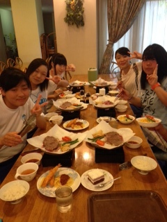 もりだくさんな昼間の体験が終わりました。今、全員元気に夕食を食べています。