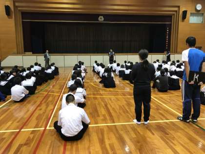 あいにくの雨でしたが、おかげでいつもできない体育館集合の訓練もできました。