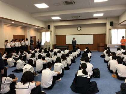 各委員会からの連絡の後、新しい生徒会長からあいさつがありました。