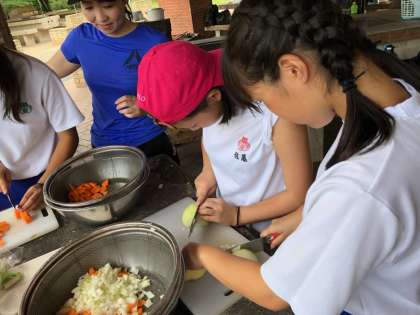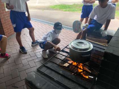 かまど係、食材係、道具係、みんなで協力して、楽しく料理ができました。