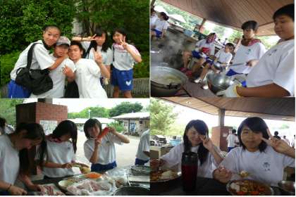 到着後、飯ごう炊さんの班に分かれて、みんなでカレーを作りました。それぞれの班が協力し、おいしい?カレーが出来上がりました。
