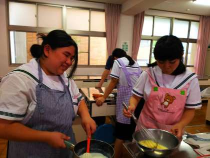 今回は、ロコモコとプリンを作りました。ワイワイと楽しい雰囲気の中、分量や手順について注意しながら真剣に作っていました。