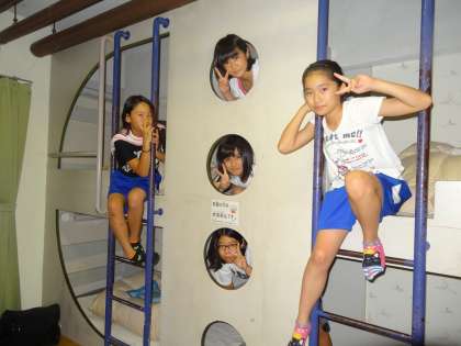 1時間のカッター活動を終え、昼ごはんまでまったりタイムです。海洋センター宿泊棟は、帆船をモデルにしていて部屋でもたのしんでいます。