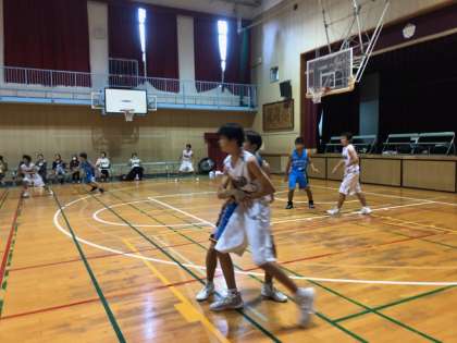7Bの代表として、8Bの1位の天王寺中学校と試合をし、60−58で見事勝利しました。