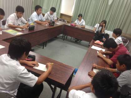 本日終学活後、子防プロの会長・各班リーダー・サブリーダーが集合し、先日の避難訓練の振り返りを行いました。