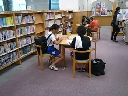 7月19日(土)に大阪市立中央図書館へ行って来ました。自転車で20分程で到着し、生徒たちは涼しい図書館の中で目あての本を見つけて読書をしたり、図書カード作ったりとそれぞれの目的に応じて活動していました。