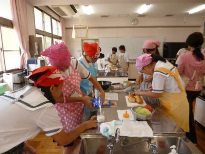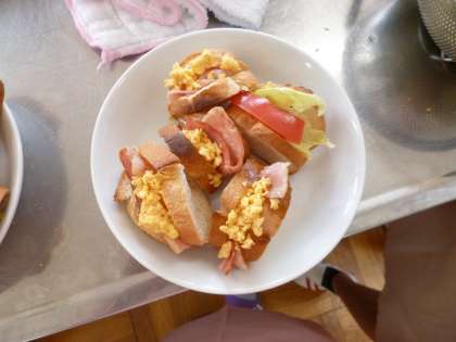 実習では「バケットサンド&コーンスープ」を作りました。どのグループも楽しくおいしく作ることができました。