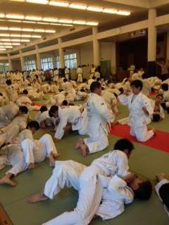 大阪城の修道館で柔道の暑中稽古が始まりました。この日の大阪市の気温は37度越え