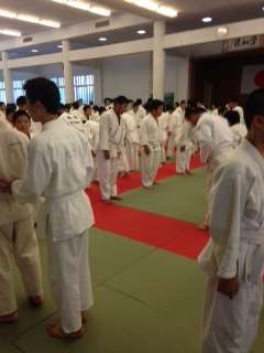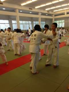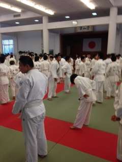 暑中稽古2日目。今日も暑い。西成から大阪城の修道館まで自転車で行く途中NHKの近くで、一人の生徒が気分悪いと、、、、他の者には、先に行かせて風通しのいい木陰で水分を取りながら、しばしの休憩。全体練習が始まって30分後に合流。彼はこの日は、見学しました。