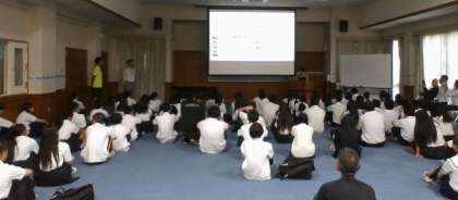 今日は、卒業生の方が来てくださり、卒業後の進路について、経験を交えてお話してくださいました。