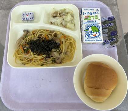 今日の「ウインナーときのこの和風スパゲッティ」には、しめじとまいたけを使っています。