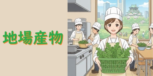 「地場産物」とは、住んでいる地域で作られた食べ物のことをいいます。近い場所で作られ、運ばれるので、新鮮な物が手に入ります。