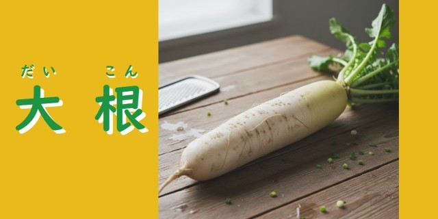 だいこんの根の部分には水分が多く、かぜを予防するビタミンCや、腸の調子を整える食物繊維などが多く含まれています。