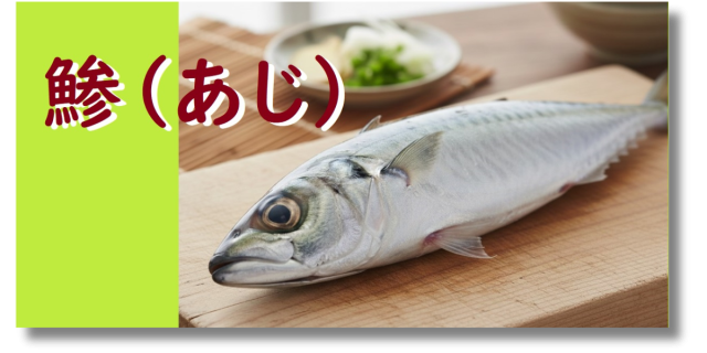 あじには、筋肉や血液をつくるたんぱく質、脂質、ビタミン類などが含まれています。