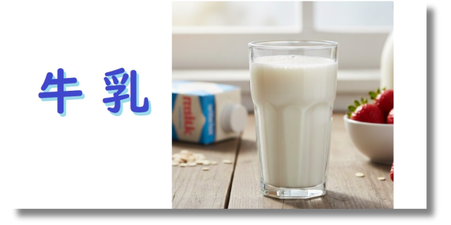 牛乳には、骨や歯を丈夫にするカルシウム、筋肉や血液をつくるたんぱく質のほかに、ビタミン類や脂質などが含まれています。