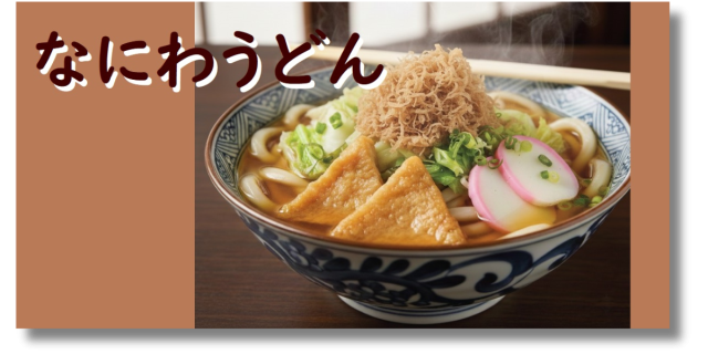 きつねうどんは、大阪で生まれたといわれています。また、とろろこんぶは、昔から大阪で作られてきました。この二つを組み合わせたうどんを大阪市の給食では「なにわうどん」と呼んでいます。