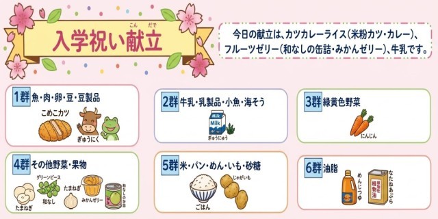 1年生のみなさん、ご入学おめでとうございます。今日の給食は、みなさんが中学生になったお祝いの献立です。