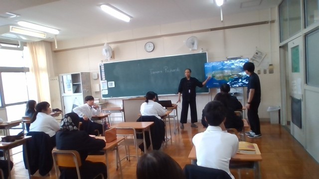 今日は、C-NET(大阪市外国語(英語)指導助手)の先生の紹介の後、数字や色、形をあらわす英語について学習しました。