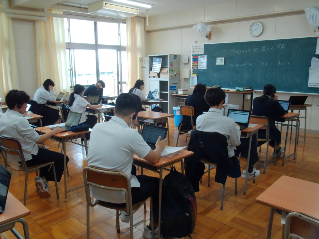 4月20日(月)3年全国学力・学習状況調査の様子(英語3技能・生徒質問調査)