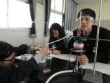 赤ワインの蒸留実験をおこないました。 蒸留は初めてで、出てきた気体を冷やすのに、...