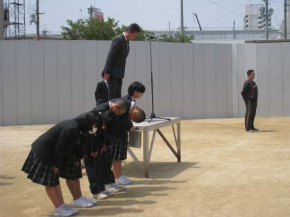 学生があいさつを返すのを見たことはありません。
