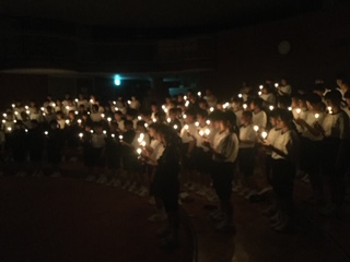 キャンドルサービスで火の神から自律、協働、福祉、友情の火をいただき、これからの学校生活を照らし出す道しるべとすることを誓いました。