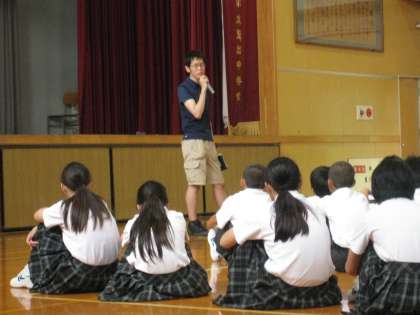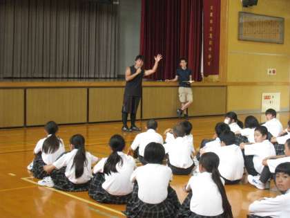 4時間目体育館で事前指導です。