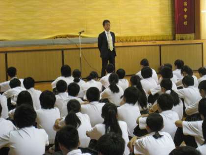 体育館での集会です。