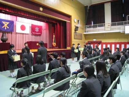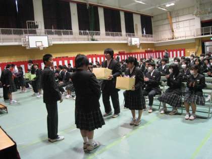 本来は、卒業生を送る集会で贈呈するはずでしたが、